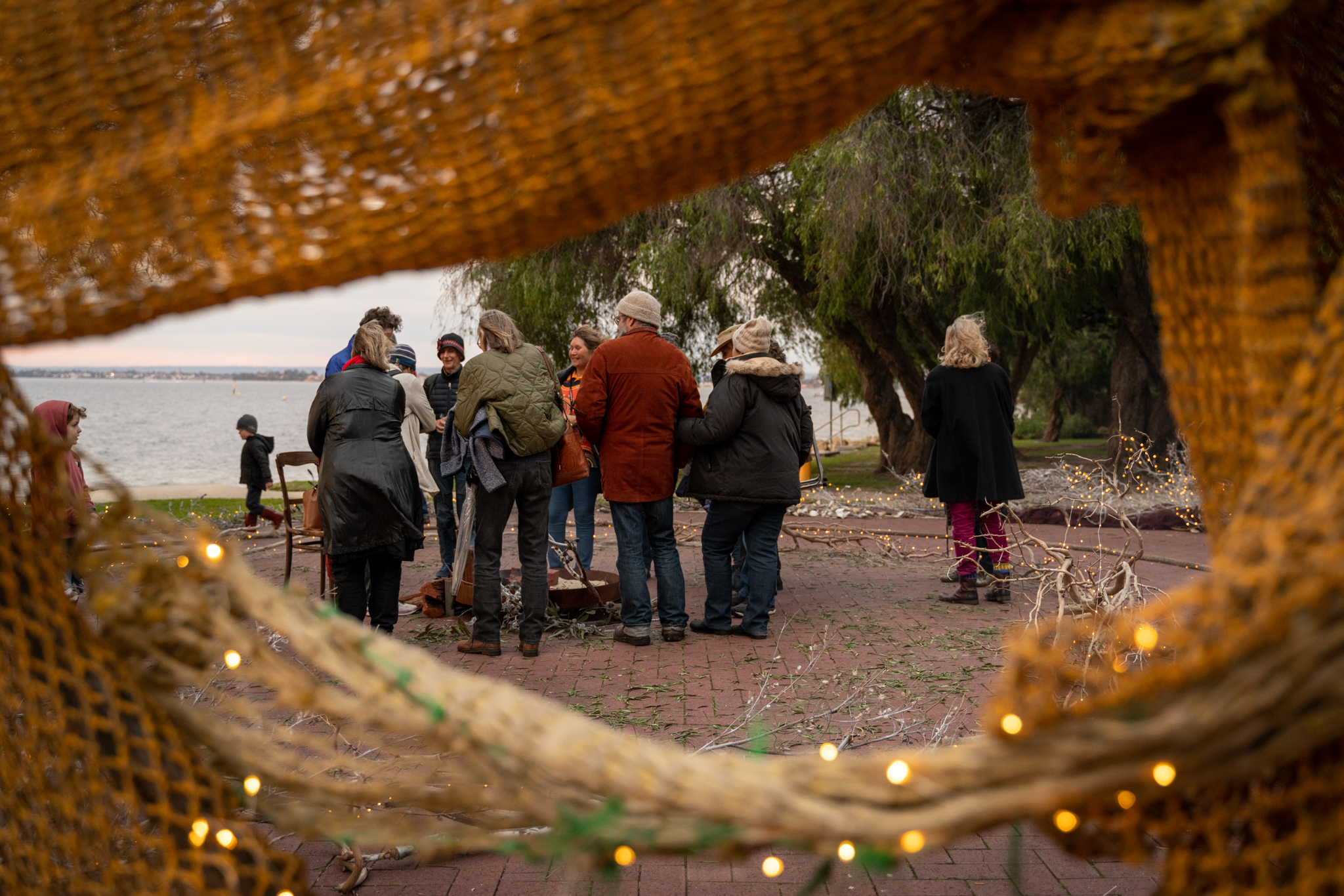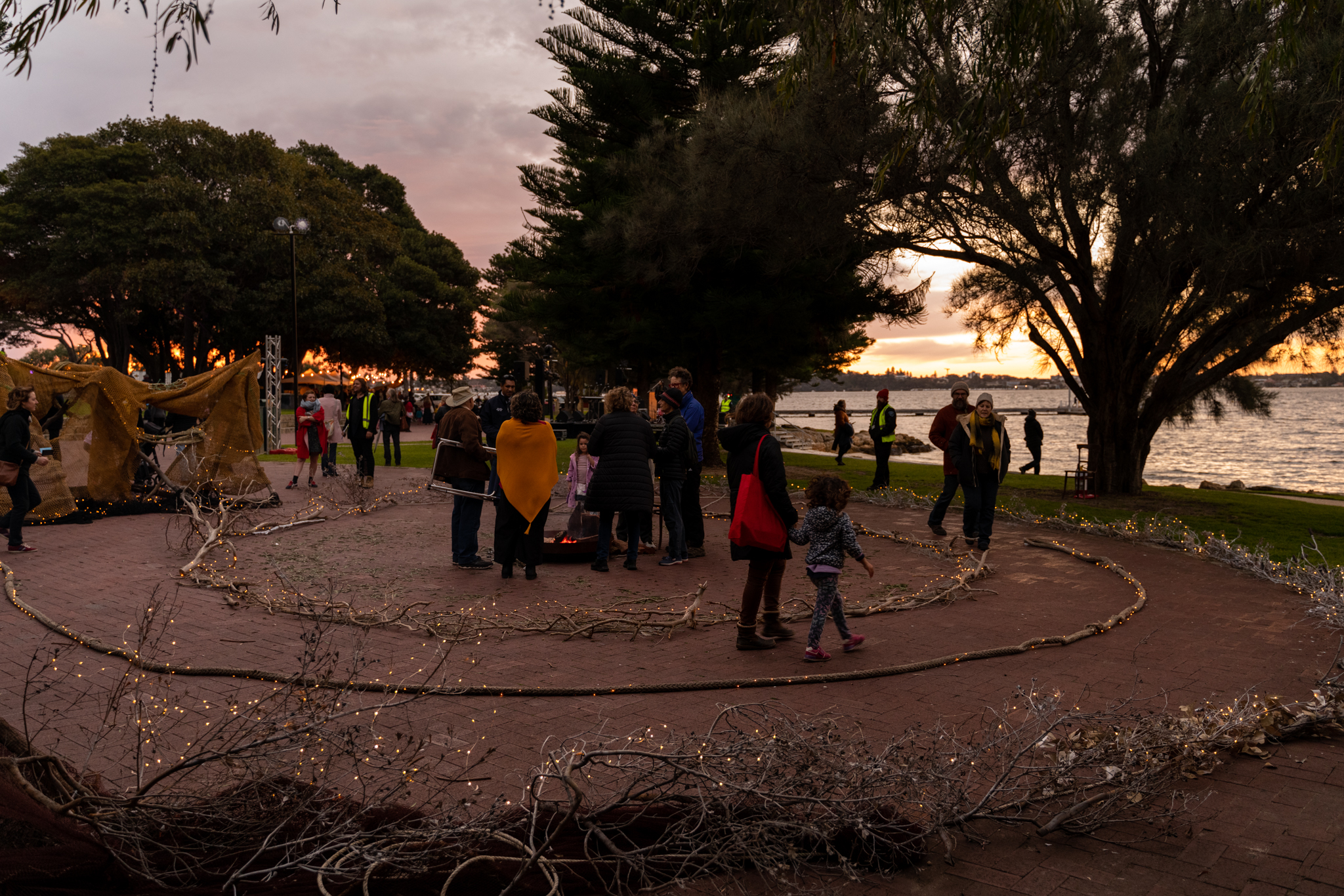 I was commissioned by City of Melville to create a giant spiral as part of their Midwinter Festival.. Festival goers had the opportunity to enter the spiral that was created from native flora found at Dyoondalup.