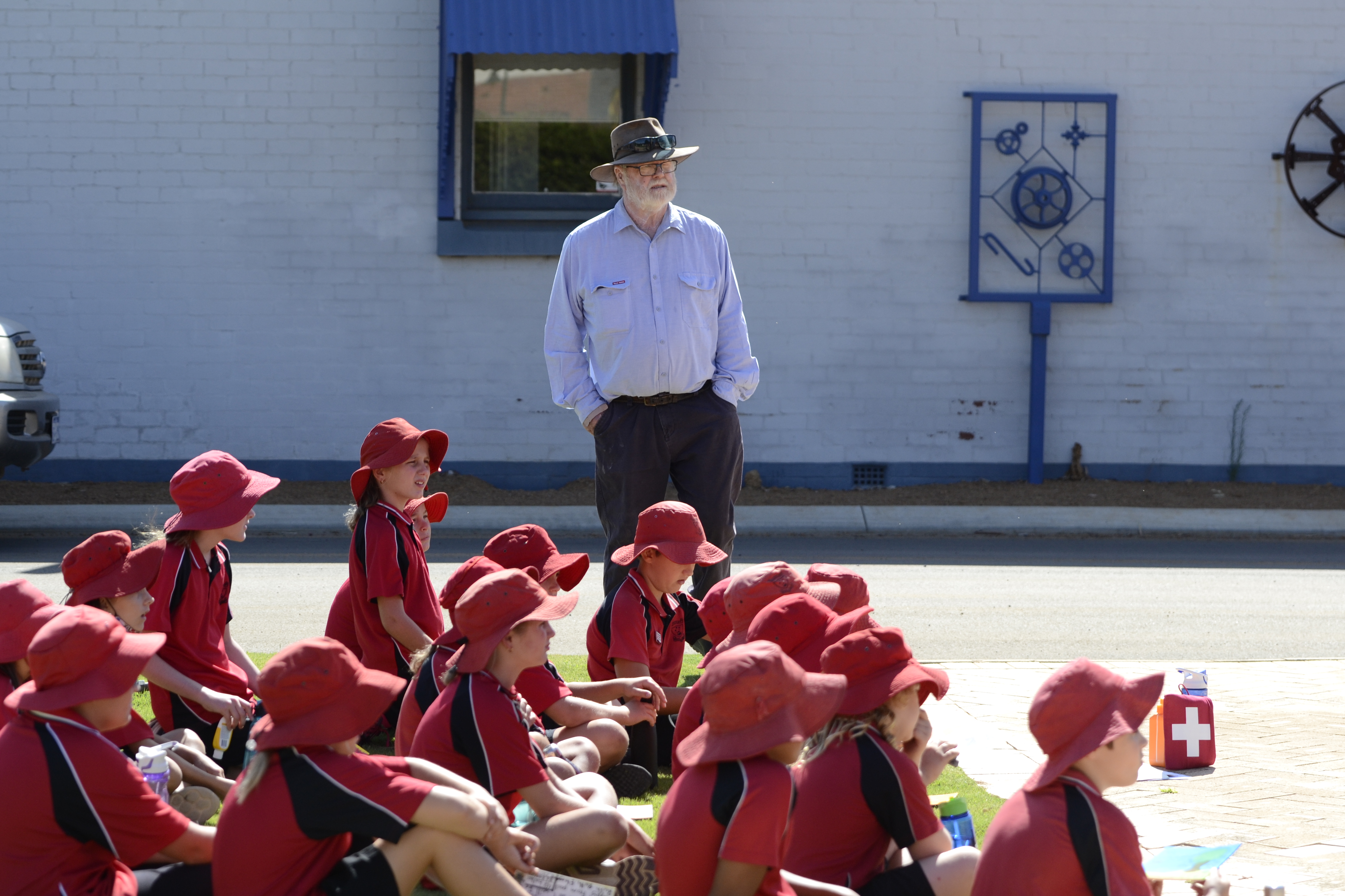 Selected stories were brought to life as children navigated a historical walk around the town. Research acquired from the Beverley Historical Society, was delivered to students by enthusiastic locals and Actor Bruce Denny. Denny who dressed as an indigenous tracker shared the grisly tale of the Hackett Murders from the perspective of the Indigenous trackers, who helped apprehend the ticket of leave men responsible for the slaying. Other shared stories were of Frances White who independently ran the Waverley Dairy after the premature death of her husband, Selby Ford who built the famous Silver Centenary Plane, Jessie Christina Clifton, the only women on the Beverley War Memorial, the building of The Dome Petrol Station, the burning down of the Beverley Flour Mill, Italian POWs who worked the land whilst local men went to war, early Chinese market gardeners who contributed to the local economy, in spite of racial vilification from attitudes deriving from the White Australia Policy and flamboyant Sikh hawker, Veer Singh.