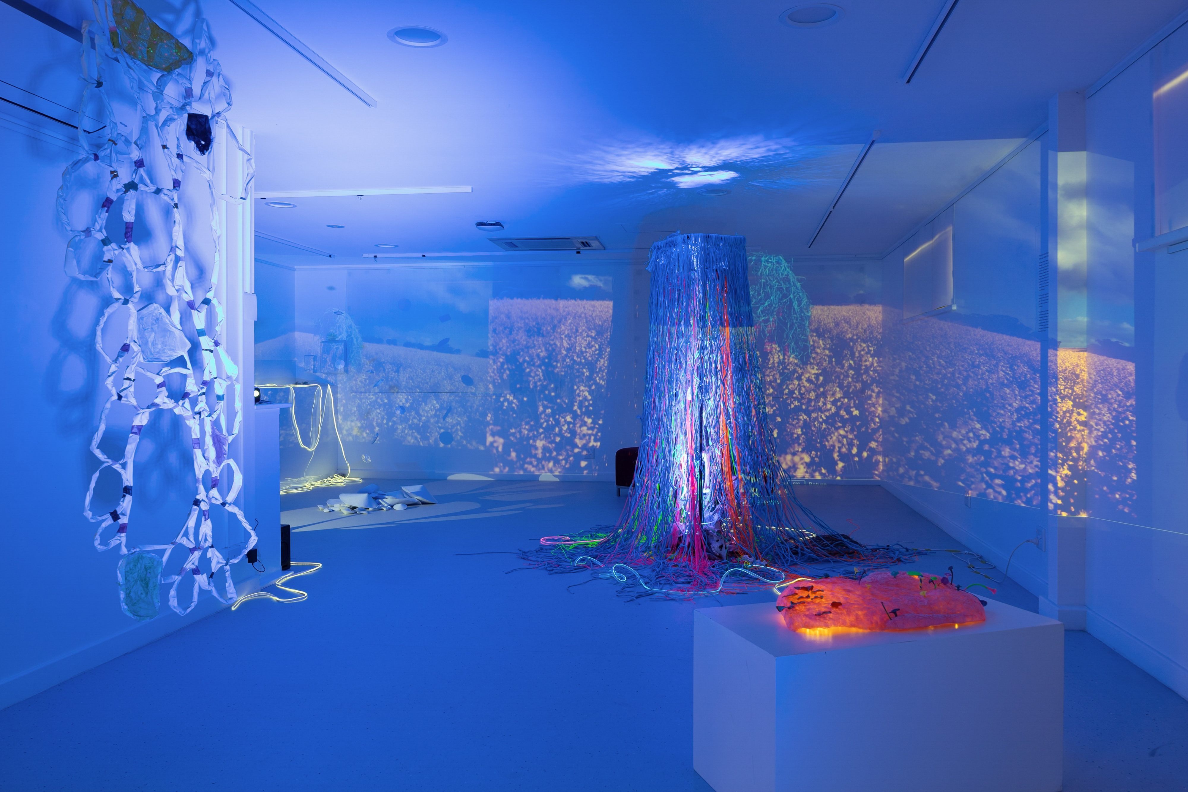 MYCELIUM was a collaborative exhibition by artist’s Sophie Burgoyne, Ozlem Kesik and Kaitlyn Elsegood investigating elements of fungi through a dark sci fi lens through installation, sculpture, sound and projections.