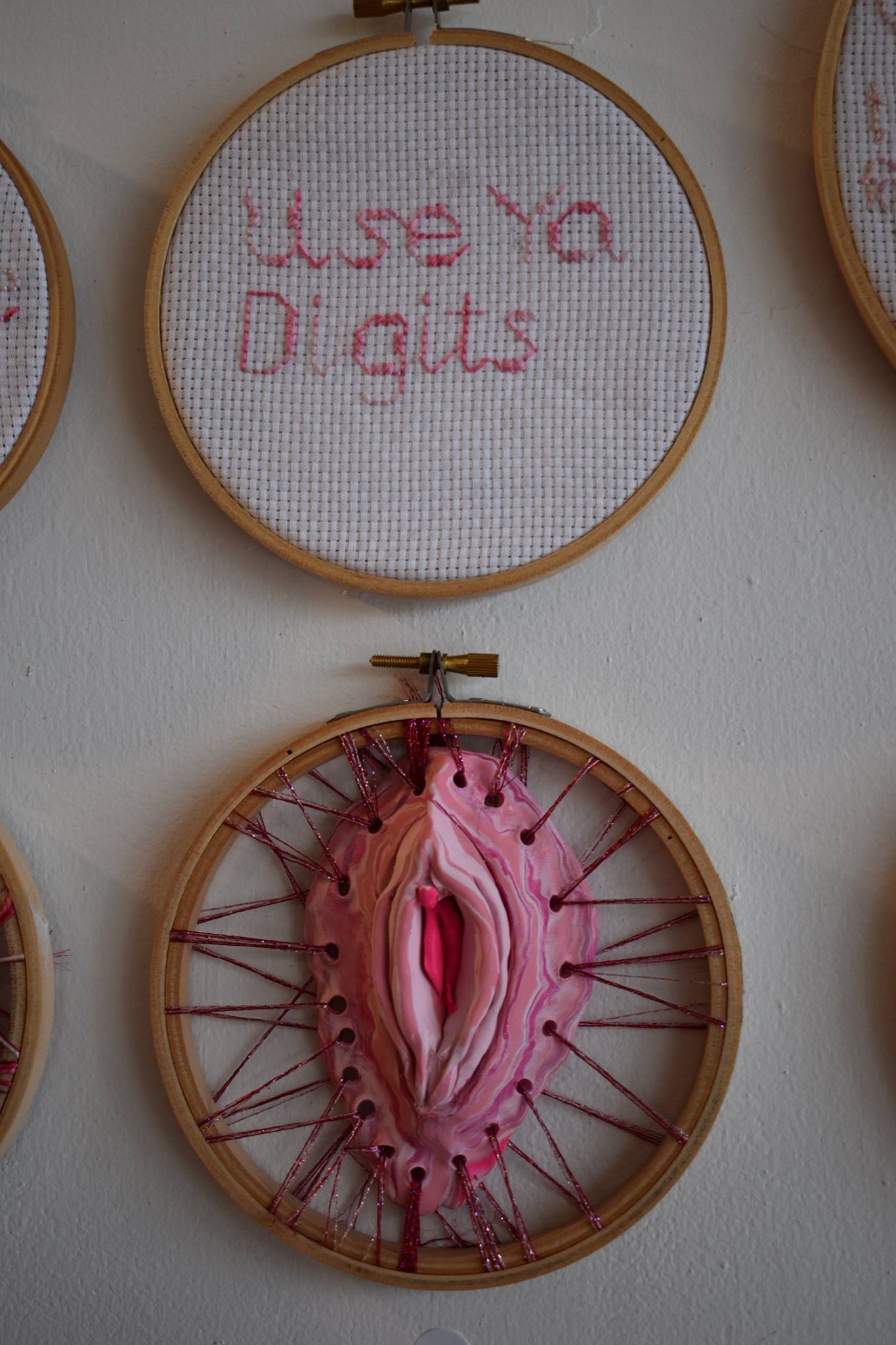 The Vulva Project: This project brought together a group of woman who stitched, sculptured, drawn, collected and shared stories of vulvas; stories which are personal, social, humorous, cultural, historical and deeply political. Featuring: Rebeka Axon, lynn mowson, Rosa Voto Ustrale, Alessandra Barone, Fiona Haasz, Jessica Lovell, Kaitlyn Elsegood and Robin Tregenza.